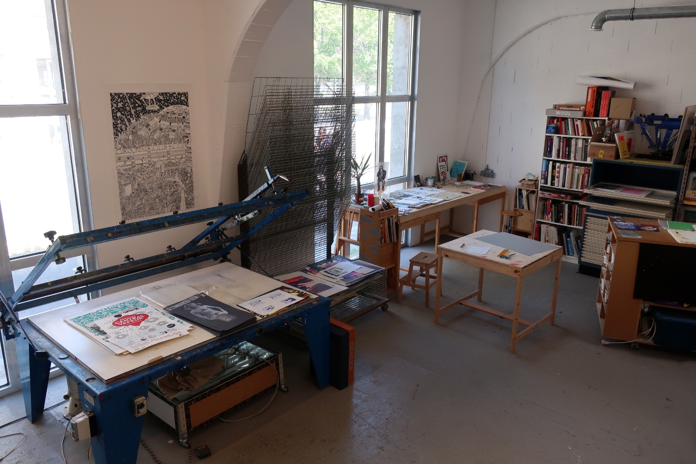 Gargarismes édite et collabore avec des auteur.ices/illustrateur.ices et imprime ses productions au duplicopieur Riso et/ou en sérigraphie. Les supports de publication sont multiples, affiche, carte postale, livre, disque ou encore cassette audio. L’atelier à élu domicile depuis fin 2019 à Garage COOP au port du Rhin (Strasbourg), partageant les locaux avec Emmanuelle Giora, sérigraphe et céramiste avec qui Pierre à fondé l’atelier d’impression Garage Print.